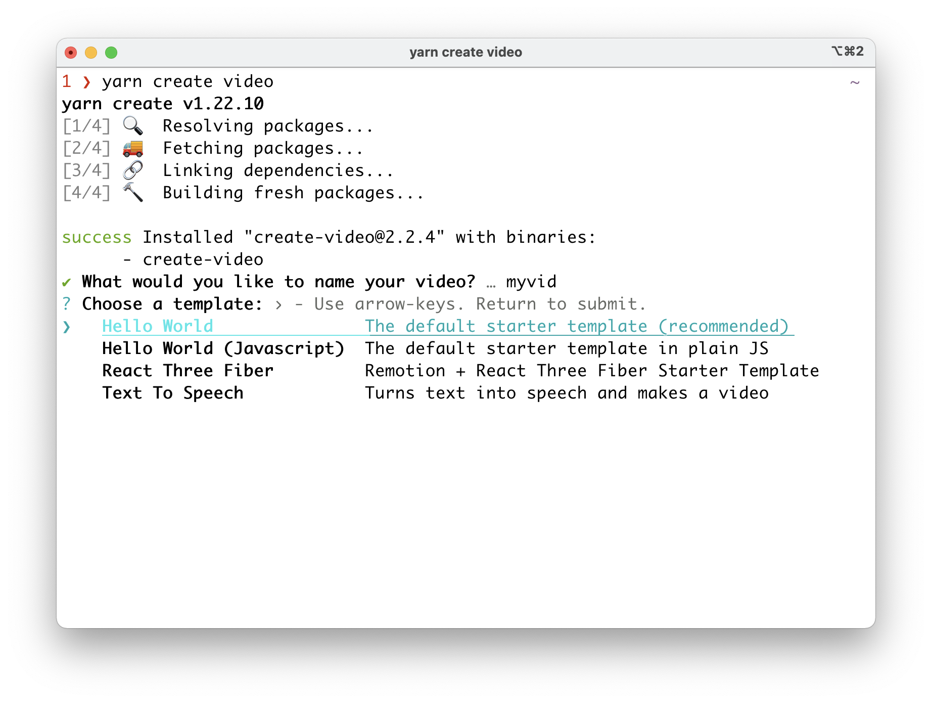 Until now, every time you ran yarn create video, a binary of Chromium was installed, which was slow and took a lot of space (between 170-280MB depending on the OS). Making matters even worse, these binaries would not include the codec required to play MP4 videos, meaning if you wanted to embed one, you had to convert it to WebM first.
